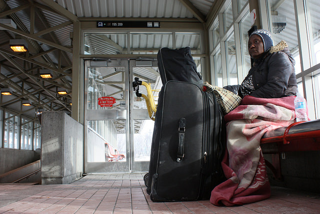 “I’m waiting for a deposit from the government,” says Hajaratu Kamara at Dorval Bus Terminal in Montreal, QC, on Sunday, Jan. 24, 2016. Kamara is living temporarily at the bus terminal. (William Fox / Course JOUR366 at Concordia University)